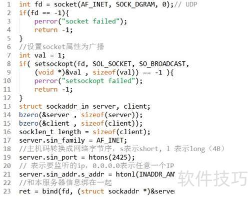 9、 调用setsockopt函数配置套接字属性,启用广播功能。
