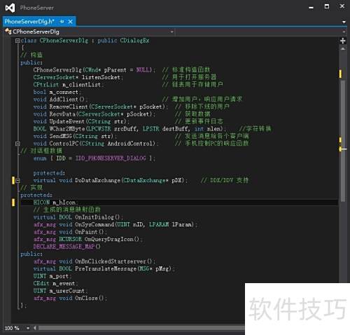 10、 别忘了包含CPhoneServerDlg类的声明,确保头文件正确引入并定义相关功能。
