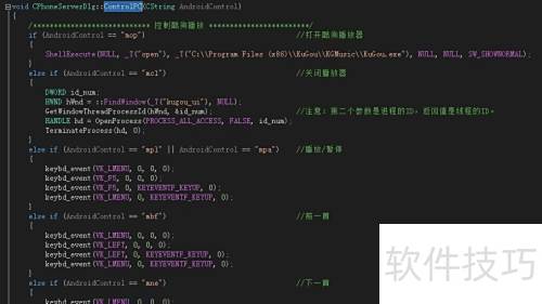 104、 编写ControlPC函数,用于接收并解析指令,实现对电脑的远程控制,主要支持手机端操作。
