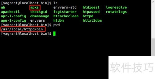 4、 进入Apache的bin目录,查找apxs所在路径,例如:/usr/local/apache/bin/apxs。