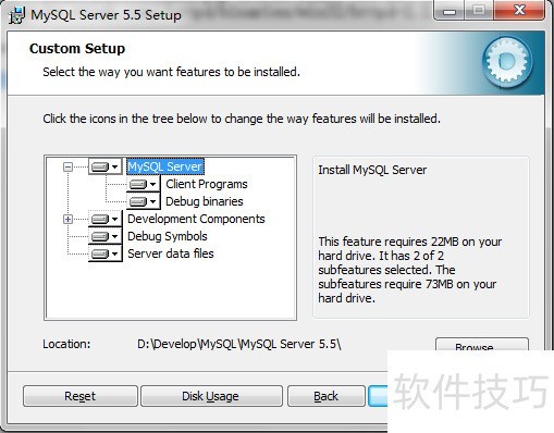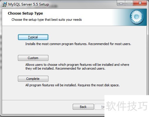 10、 安装MySQL时,双击运行安装程序。如需自定义安装路径,在选择安装类型时点击Custom进行目录设置。