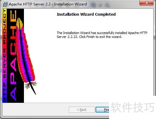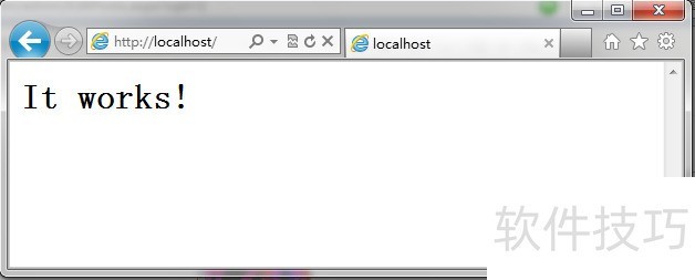 7、 点击完成结束安装,随后在浏览器地址栏输入http://localhost,若页面显示It Works!,则说明Apache已成功安装并正常运行。