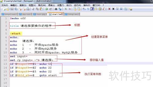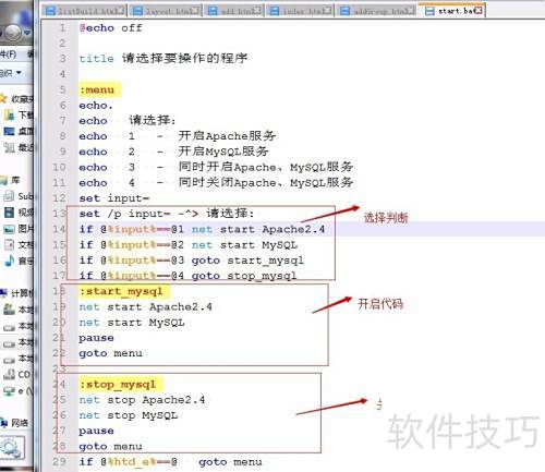6、 将启动与关闭指令添加至start.bat批处理文件中。