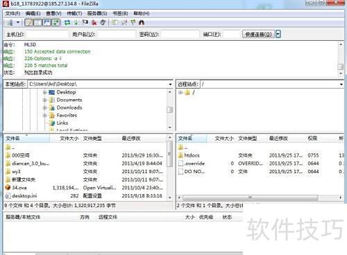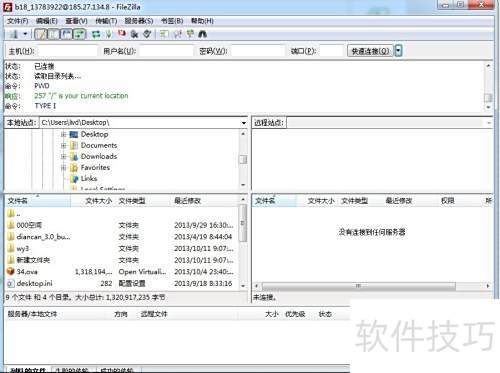 3、 点击快速连接,系统将自动接入FTP上传空间,右侧显示空间内文件,同时弹出提示确认连接是否成功。