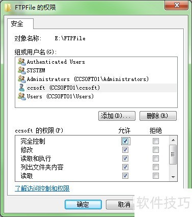 13、 至此,小地球CCSOFT的FTP访问已配置完成,可使用CCSOFT用户成功登录。但当前无法对二级目录ccsoft进行操作。如需访问该目录,请参照前述方法,添加相应的FTP授权规则即可。感谢大家的配合与支持。