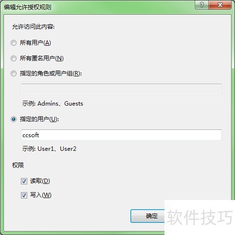 10、 所示,右键点击(小地球)CCSOFT,选择编辑权限,进入安全选项卡,点击编辑后选择添加。在弹出的窗口中,于输入对象名称来选择栏内填写之前创建的用户名,随后点击检查名称以验证该用户是否存在,确保用户名准确无误。若系统确认无误,点击确定完成操作。