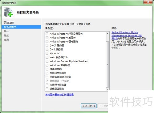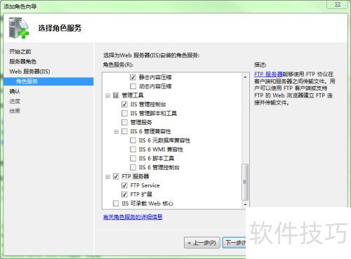 4、 除默认角色外,务必选择底部的FTP服务器,这是关键步骤,然后点击下一步。