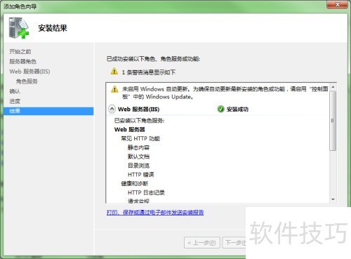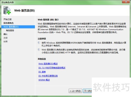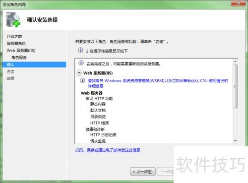 2、 安装Web服务器(IIS)功能,点击下一步继续。