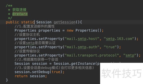 5、 所示,先配置所需协议,再通过Java Mail API创建Session对象,用于与邮件服务器建立通信连接。