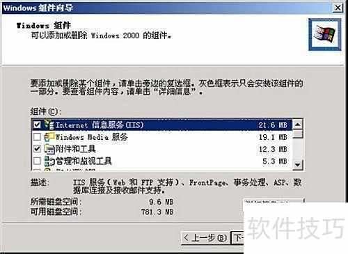 1、 安装IIS可依次点击开始→设置→控制面板→添加/删除程序,打开对应对话框后,选择添加/删除Windows组件,此时将弹出如下所示的窗口界面,按提示操作即可完成安装配置过程。