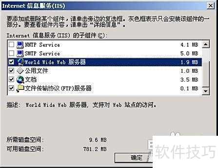 3、 选择图2中的文件传输协议(FTP)服务器,点击确定,按向导步骤完成安装。