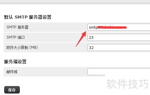 9、 配置默认SMTP服务器时,需在服务器设置中填入第三方邮箱提供的SMTP地址。