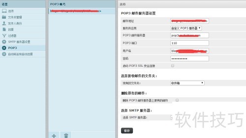 14、 保存后进入pop3配置界面,依次输入邮箱账号、服务器地址及登录密码完成设置。