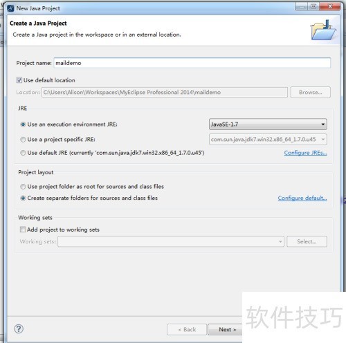 1、 启动MyEclipse或其他开发工具,创建一个基础Java项目,以QQ邮箱发信功能为例进行演示。