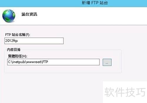 4、 输入FTP名称和指定路径。