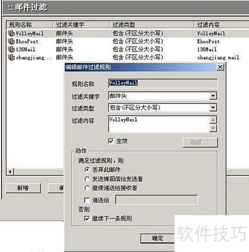 13、 进入系统设置中的邮件过滤,添加若干支持HELO/EHLO协议的群发邮件软件特征标识。