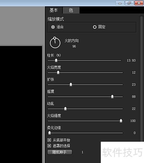 4、 调整参数并实时预览效果,随时观察变化,还可自定义修改火焰颜色。