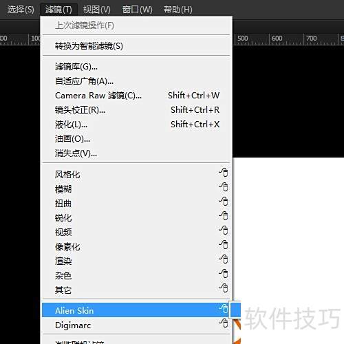 2、 选择所需文本后,点击滤镜菜单,依次选择Alien Skin和Eye Candy 7进行下一步操作。