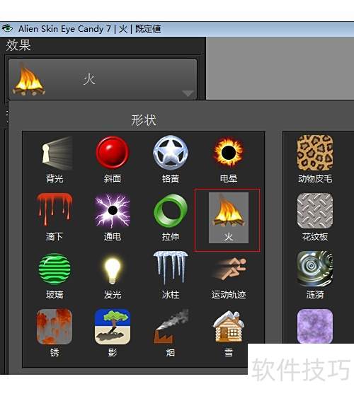 3、 启动Alien Skin Eye Candy 7,进入界面后选取火焰特效功能。