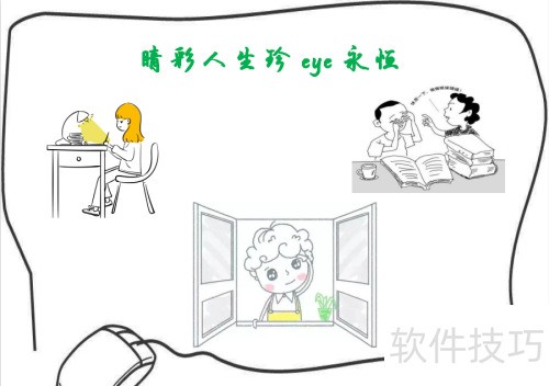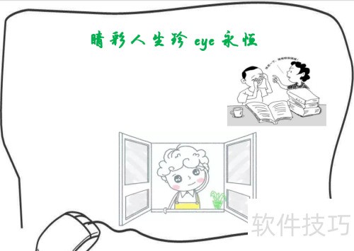4、 在手抄报右上角画上提示:看书久了记得做眼保健操。