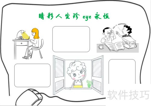 6、 在手抄报的空白区域添加边框,以便书写文字,这样一幅主题为睛彩人生,珍eye永恒的手抄报便完成了。