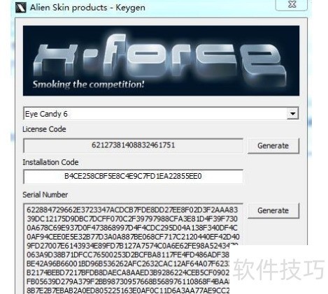 5、 启动注册机后,请注意将顶部下拉菜单设置为Eye Candy6,否则无法正常运行。