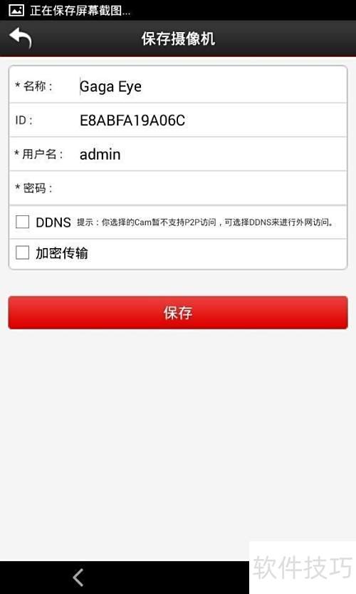4、 开启录像功能后,手机Wi-Fi将显示GAGA EYE信号,连接该网络,打开软件,选择添加摄像机,通过局域网搜索找到设备信息,确认并保存,即可实时查看摄像画面。整个过程简单快捷,便于用户迅速完成设备绑定与监控操作。