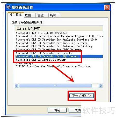 5、 单击build...按钮,按图示选择用于连接SQL Server数据库的驱动程序,然后点击下一步继续操作。