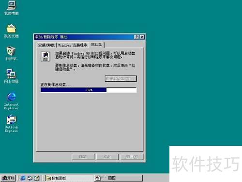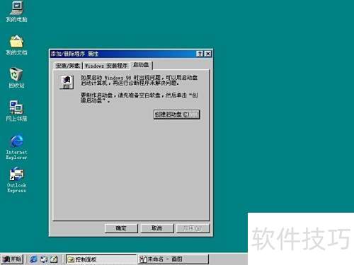 10、 打开程序属性对话框,选择启动盘进行添加或删除操作。