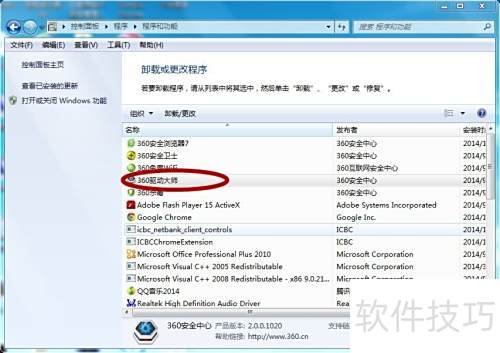 3、 点击红框内需卸载的软件,以360驱动大师为示例操作。