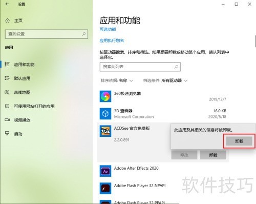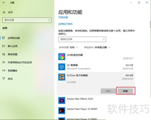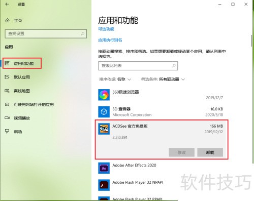 3、 进入页面,在程序列表中找到需卸载的软件,如ACDSee官方免费版,点击该项即可进行卸载操作。
