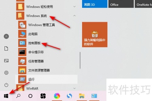 1、 启动ThinkPad E15,点击屏幕左下角开始按钮,选择Windows系统,进入控制面板。