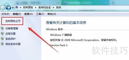 3、 在属性面板左侧选择控制面板主页,位置所示。