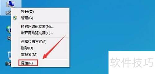 1、 在电脑桌面找到我的电脑,右键点击,从弹出菜单中选择属性选项,操作所示。