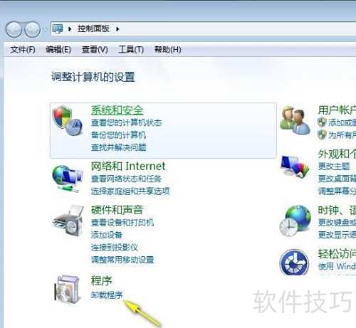 2、 进入控制面板,选择程序,点击卸载程序即可操作。