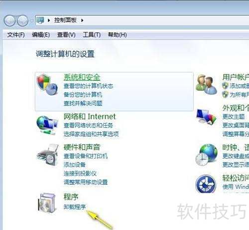 2、 进入控制面板,选择程序,点击卸载程序,操作所示。