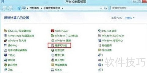 2、 打开控制面板,点击程序和功能,查看已安装软件,双击所需程序即可卸载,操作步骤所示。