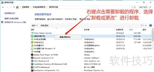 9、 打开程序和功能,右键选中要删除的软件,点击卸载或更改即可完成卸载操作。