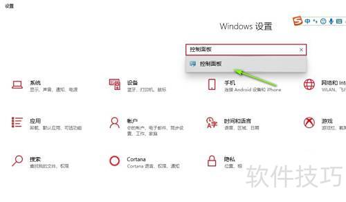 9、 在搜索框中输入控制面板进行查找。
