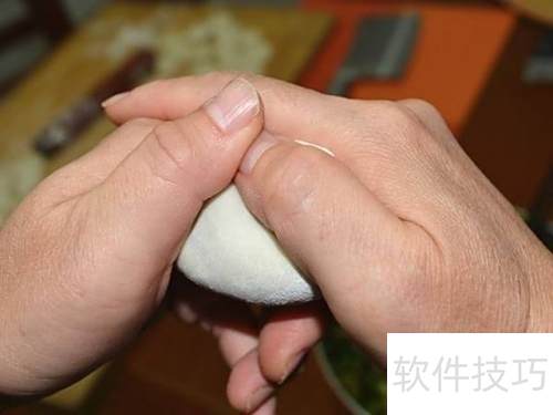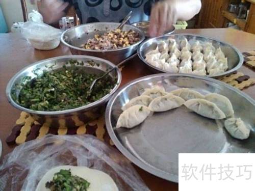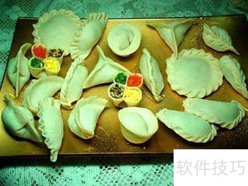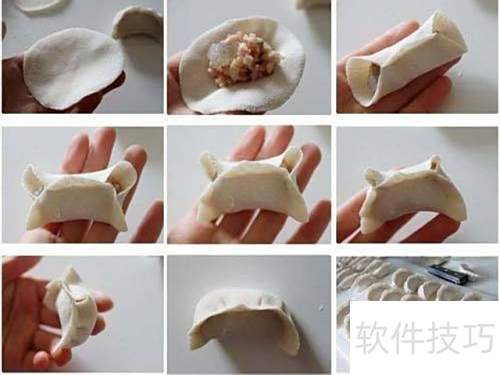 11、 包饺子:和面、调馅、擀皮、捏合成形。