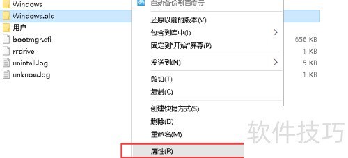 1、 先定位目标文件夹,右键点击,从弹出菜单底部选择属性选项。