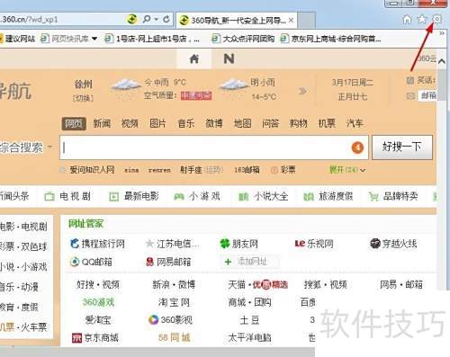 2、 启动IE浏览器,点击右上角齿轮图标,如红线所示位置。