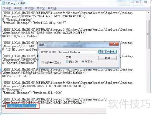 11、 用记事本打开保存的reg注册表文件,按搜索Internet Explorer,找到相关文本后,定位对应的控件ID编号。