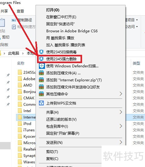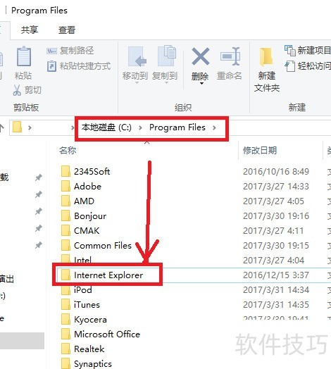 5、 完成上述步骤后,IE浏览器已被卸载,接下来可删除其安装包。安装包位于C盘的Program Files文件夹中,找到IE浏览器对应的文件夹,选中并将其删除即可彻底清理残留文件,释放磁盘空间,确保系统更加整洁。