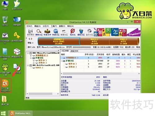 2、 进入大白菜PE系统桌面后,双击打开桌面上的分区工具DiskGenius图标。