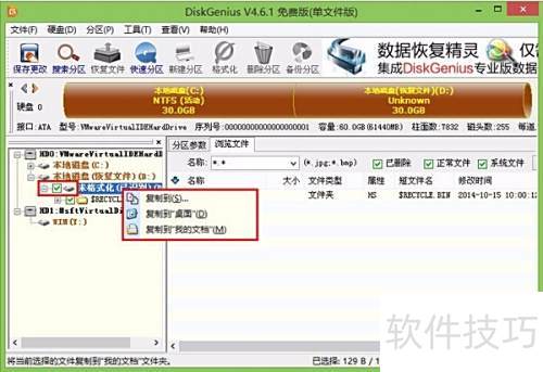 6、 选择需恢复的分区,右键指定存储位置即可。