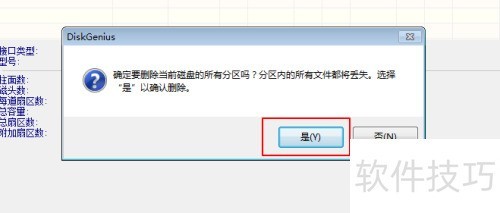 5、 在提示框中选择是,可删除所有分区,接着选中硬盘并点击格式化,此处因演示需要,功能为可操作状态。