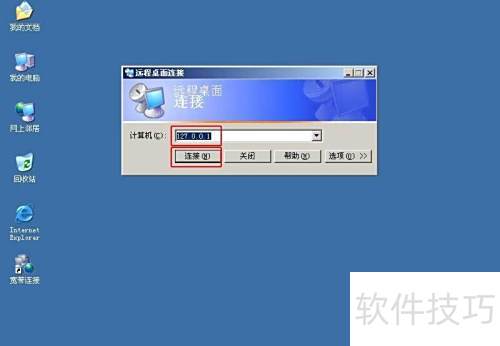 9、 在远程桌面中,于计算机栏输入127.0.0.1后点击连接即可。