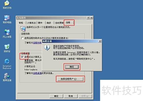 3、 进入远程桌面后,勾选启用此计算机的选项,确认远程会话提示,随后点击设置远程用户,完成相关配置操作。