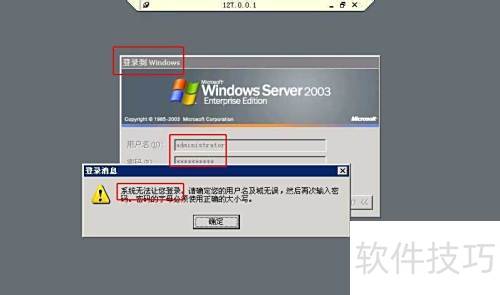 10、 若继续使用原Administrator账户及密码登录Windows,系统将提示无法完成登录。这是由于我们已对Administrator账户进行了重命名操作,因此原有凭据不再有效。